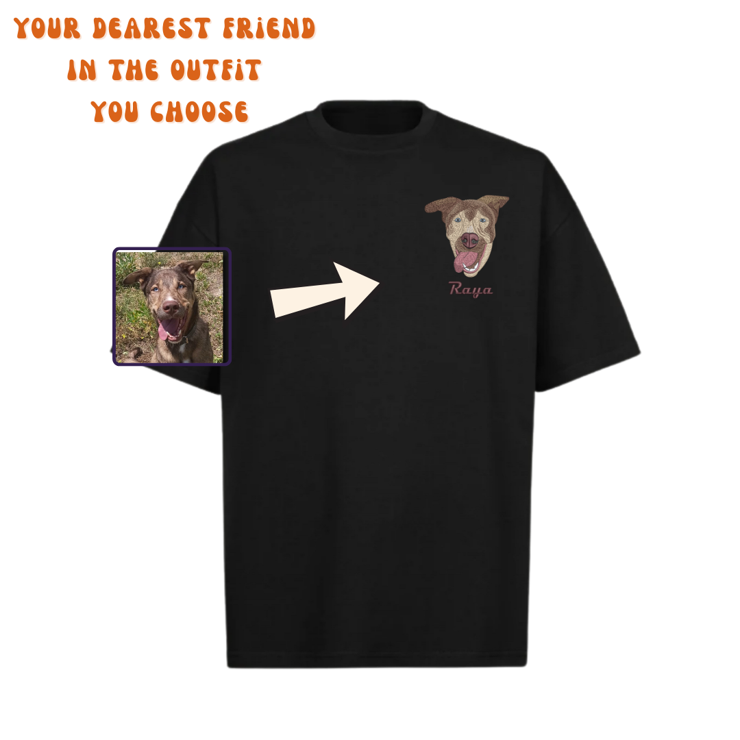 T-Shirt Embroidered Pet Portrait – Your pet's always with you!