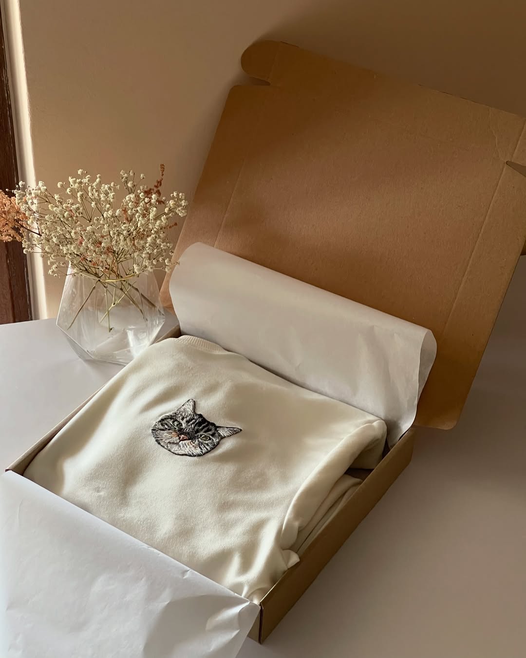 Throw on this premium light tee whether you're out walking your dog or relaxing with your cat or bunny. Featuring a detailed embroidered portrait of your pet, it’s a heartfelt way to keep them close—everywhere you go.